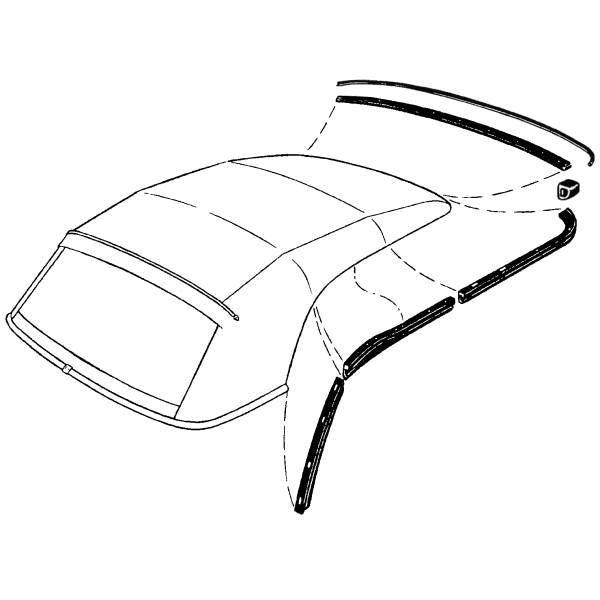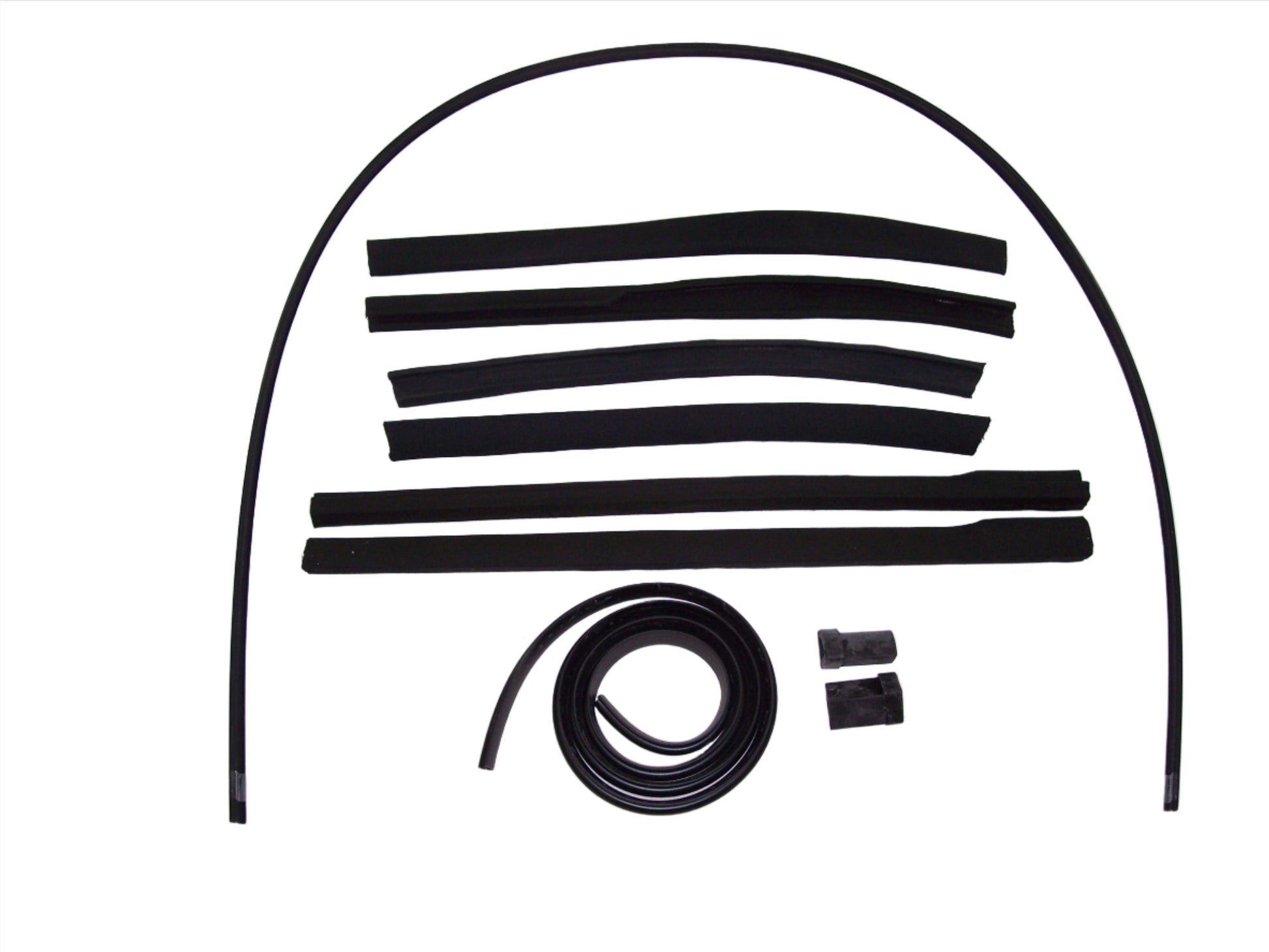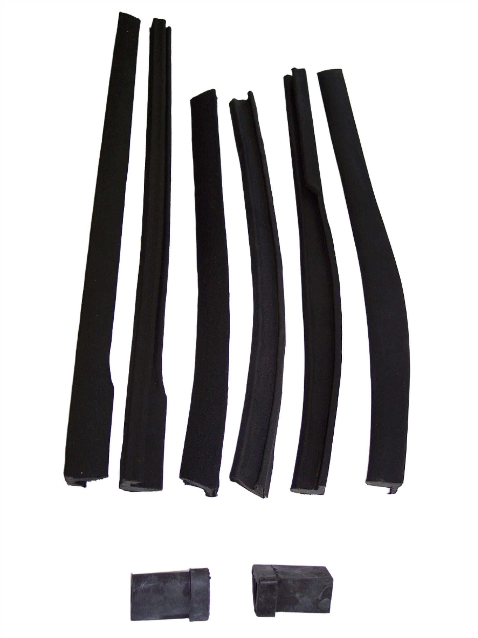 Is your hair blowing in the wind even when your convertible top is up? We have the solution for you, this is a complete 10 piece convertible top weatherstrip kit for your 1952-1954 Ford Crestline convertible. This set includes double header seal (where the top frame meets the top of the windshield frame) as well as the seals that go down both sides of the convertible top frame, where the side windows seal against the convertible top frame. This set is an excellent reproduction of the original with molded in steel cores and threaded studs and will fit great.