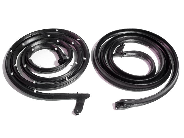 Here are the door seals for your 1963-1964 Pontiac Bonneville, Catalina & Grand Prix convertible and 2-door hardtop, the door seals take a beating and by replacing them with new you will really reduce the noise and wind coming into your car. Sold as a pair.