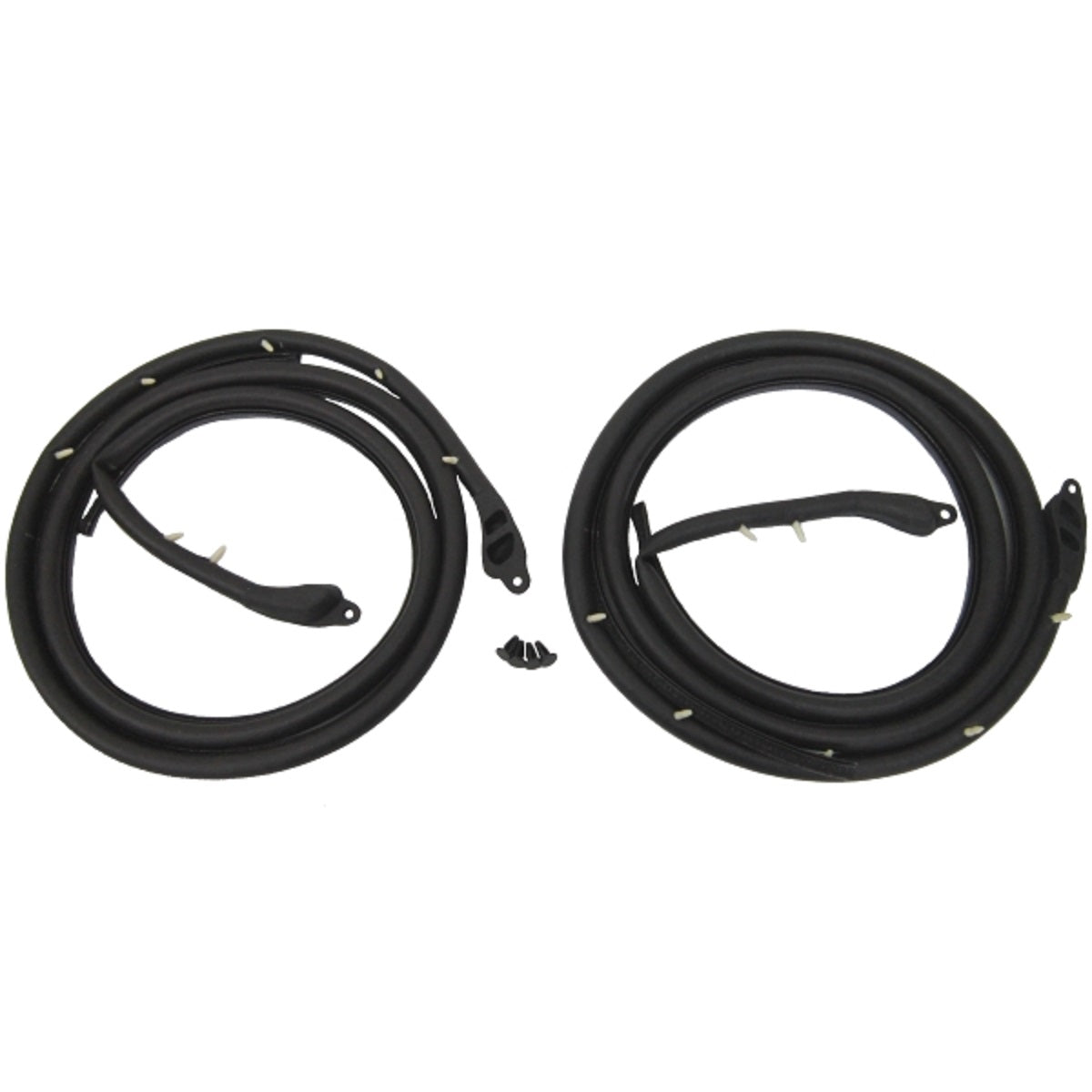 This is a pair of roof rail seals for the 1970-1977 Maverick The roof rail seals start at the front edge of the door glass and follow the roof line to the back, the door glass seals to them when you roll the window up. This seal may require weatherstrip adhesive (not included), we do have weatherstrip adhesive available.