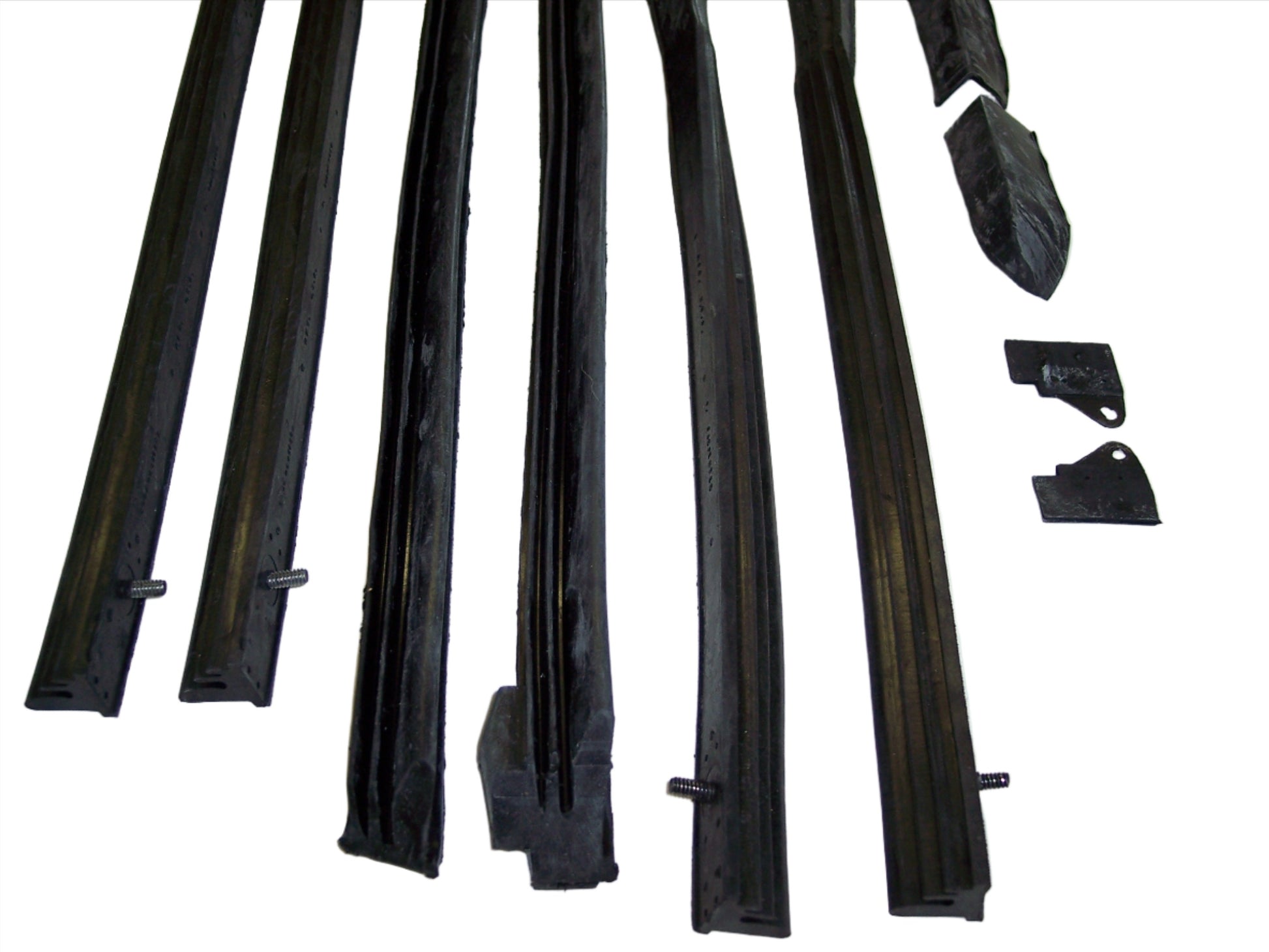 This is a pair of roof rail seals for the 1966 Fairlane, Mercury Comet. The roof rail seals start at the front edge of the door glass and follow the roof line to the back, the door glass seals to them when you roll the window up. This seal may require weatherstrip adhesive (not included), we do have weatherstrip adhesive available.