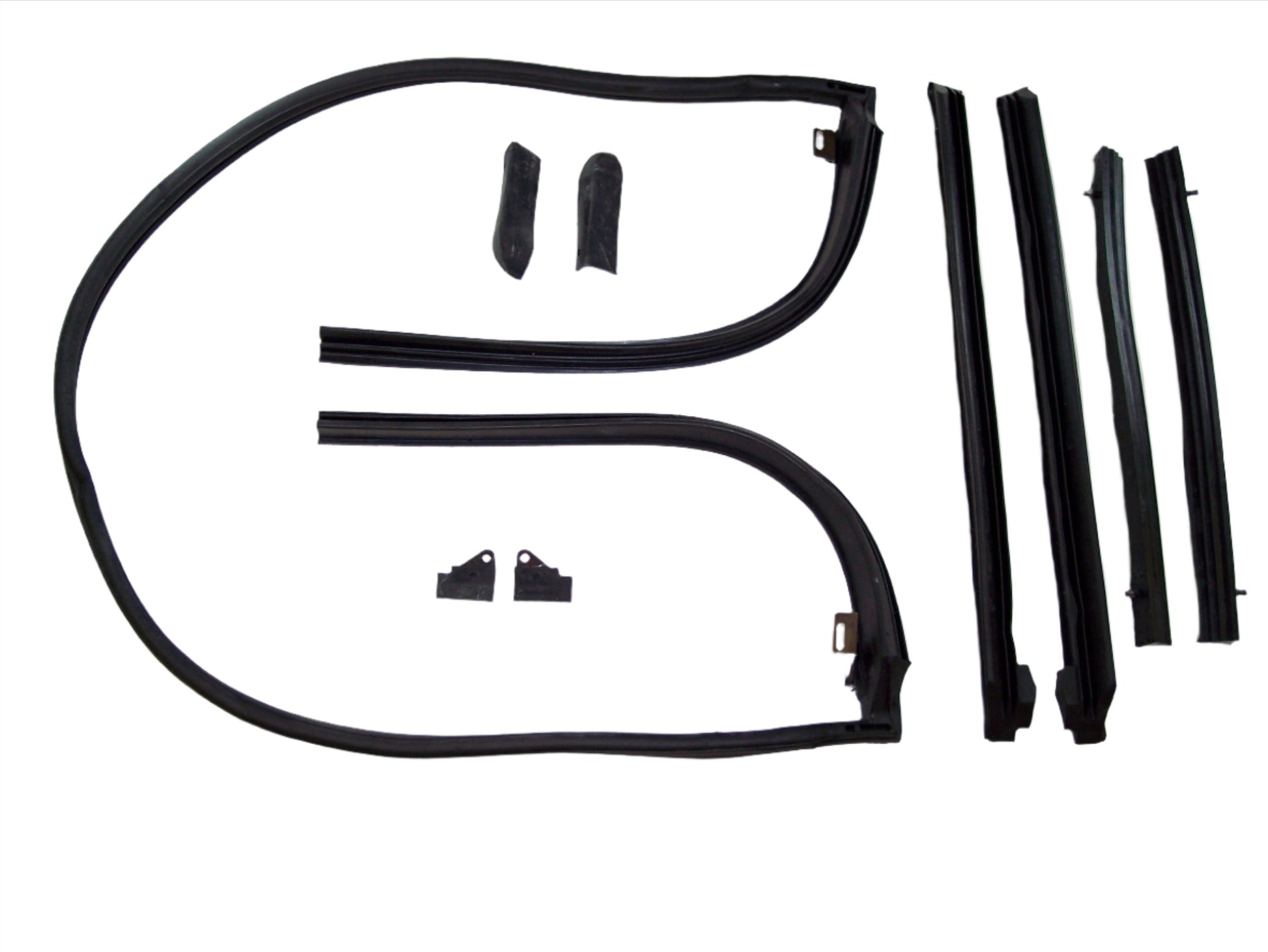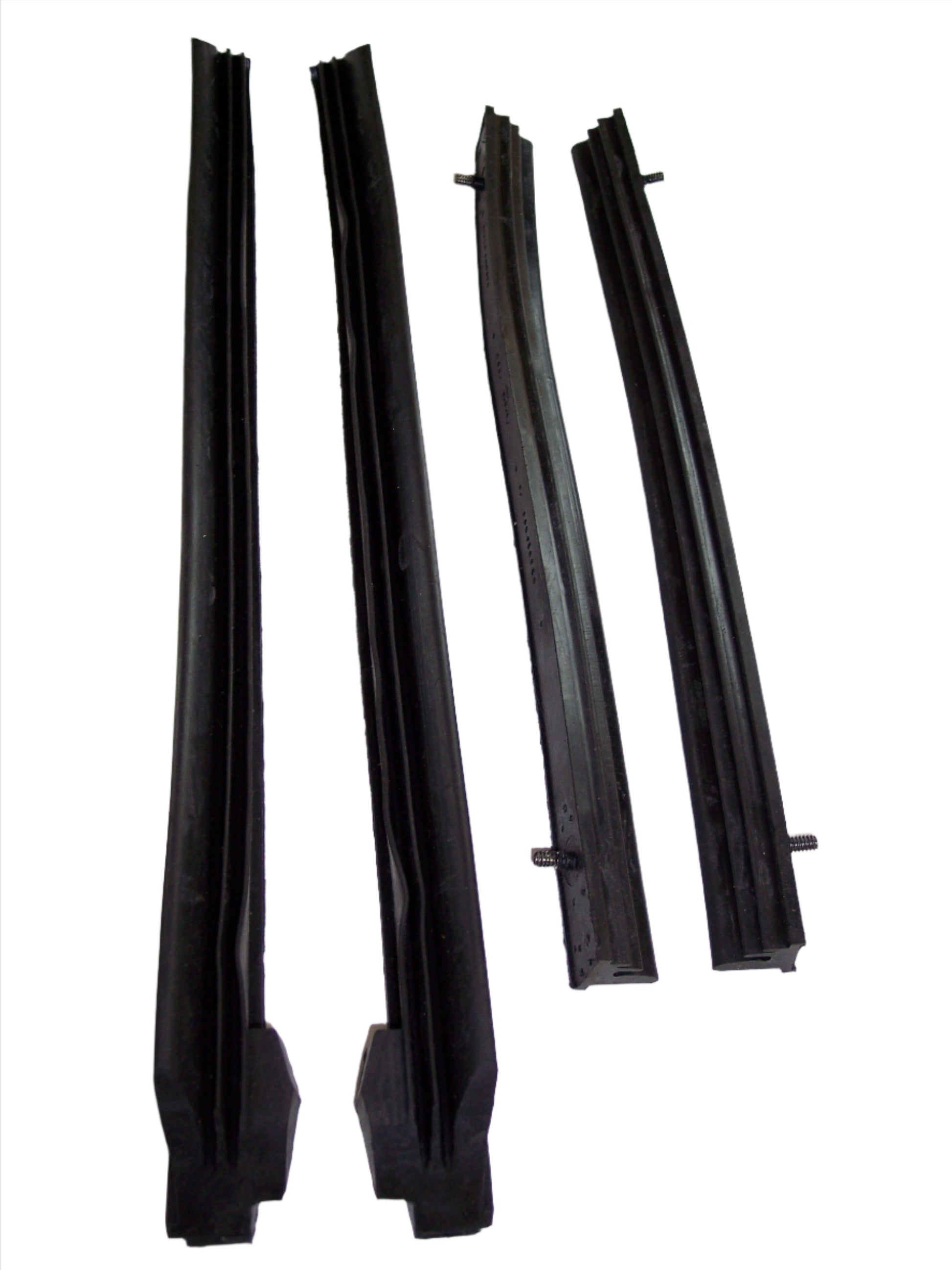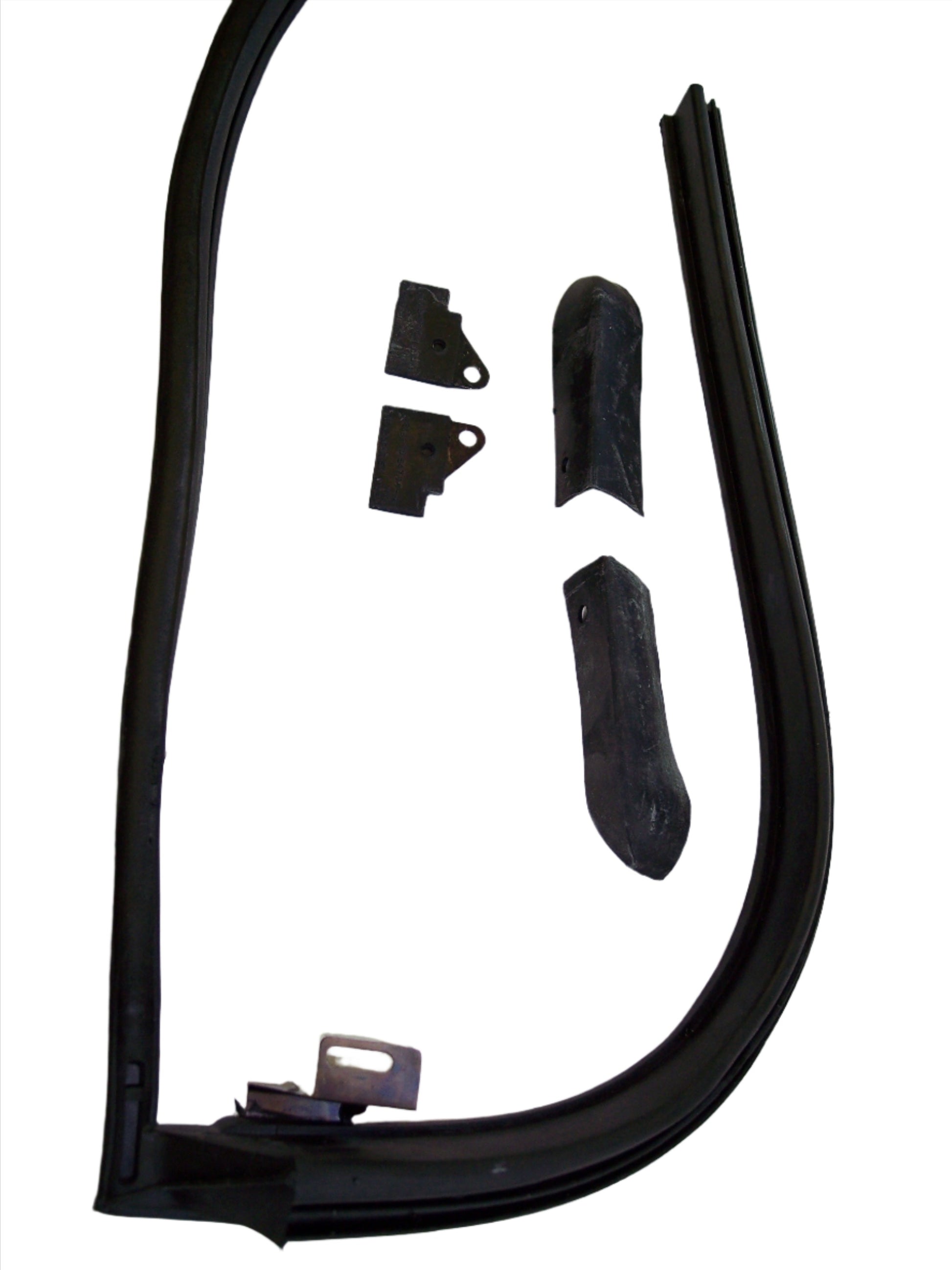 This is a pair of roof rail seals for the 1966 Fairlane, & Mercury Cyclone Convertible. The roof rail seals start at the front edge of the door glass and follow the roof line to the back, the door glass seals to them when you roll the window up. This seal may require weatherstrip adhesive (not included), we do have weatherstrip adhesive available.