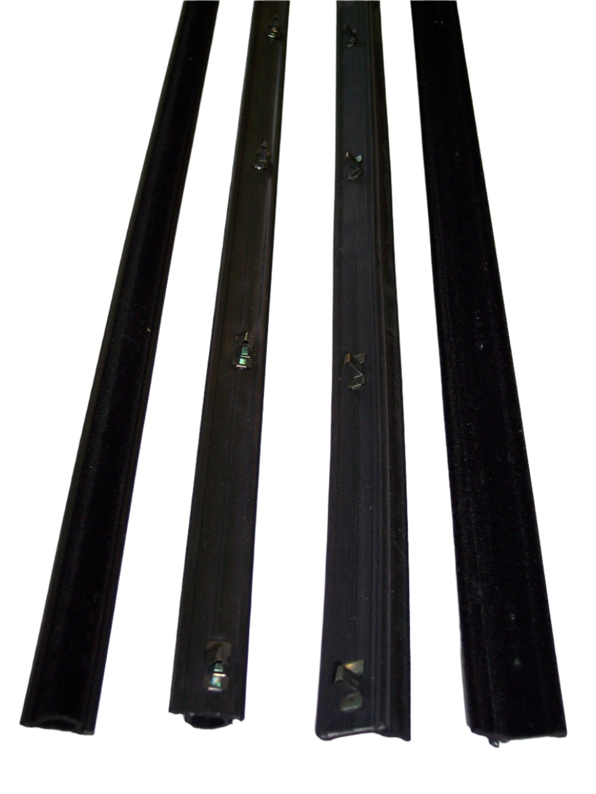 Do your windows rattle and shake when you hit a bump or shut the door on your 1970-1977 Ford Maverick? Weatherstrip Specialists has available a 4-piece inner-outer window sweep set (also called dew wipes, felts or fuzzies) made just for your car, this set covers the inside & outside of both doors. The window sweeps are the rubber and felt pieces that attach on the top of the door and rub against the door glass when you roll the window up and down, they take a lot of abuse from the weather and when they are bad water can run into the doors and rust them out. This is an excellent quality reproduction that will bring the life back to your doors, they have the proper curves to fit your car perfectly, comes with the mounting holes and notches already in place to make your life easier!