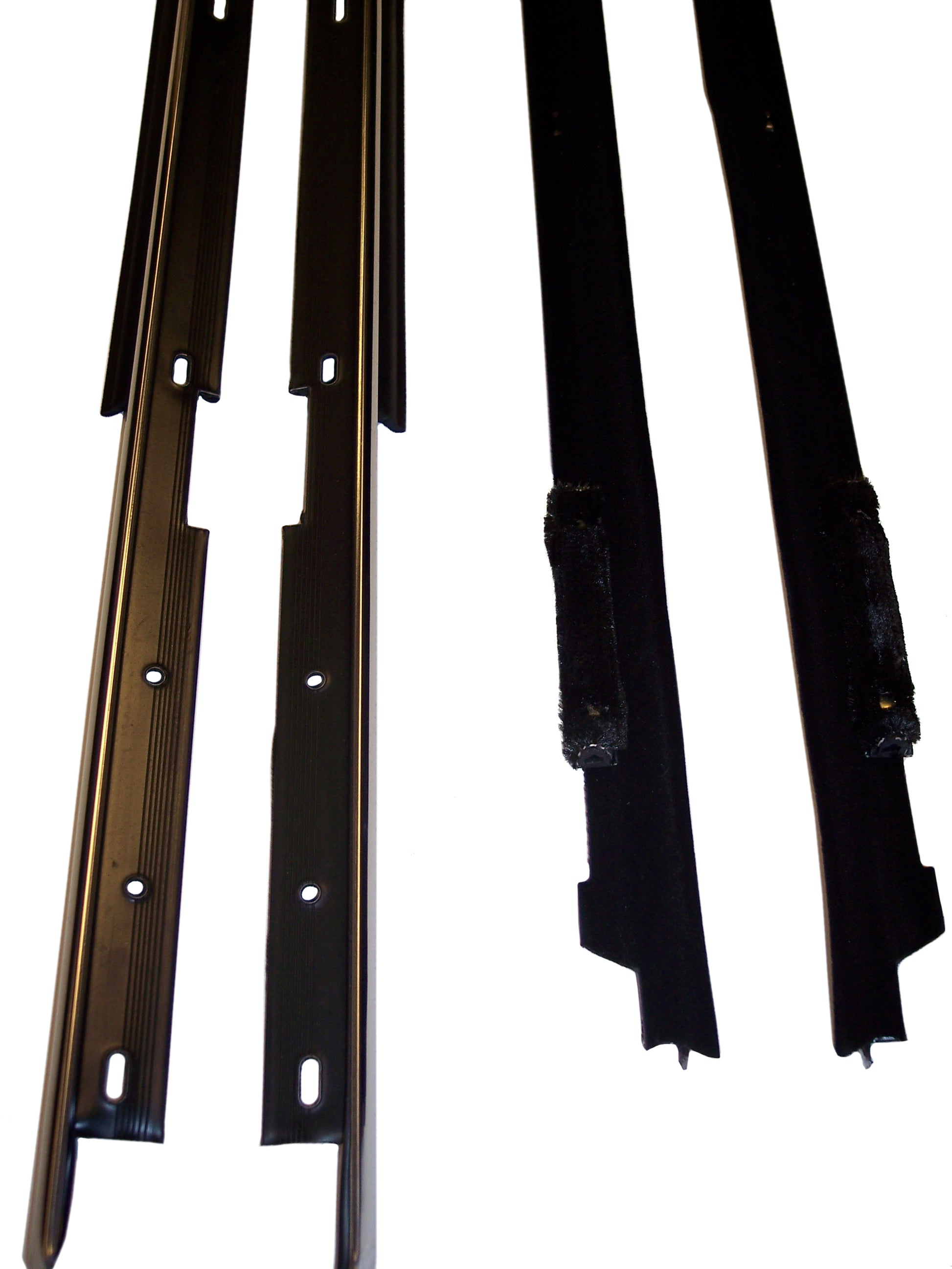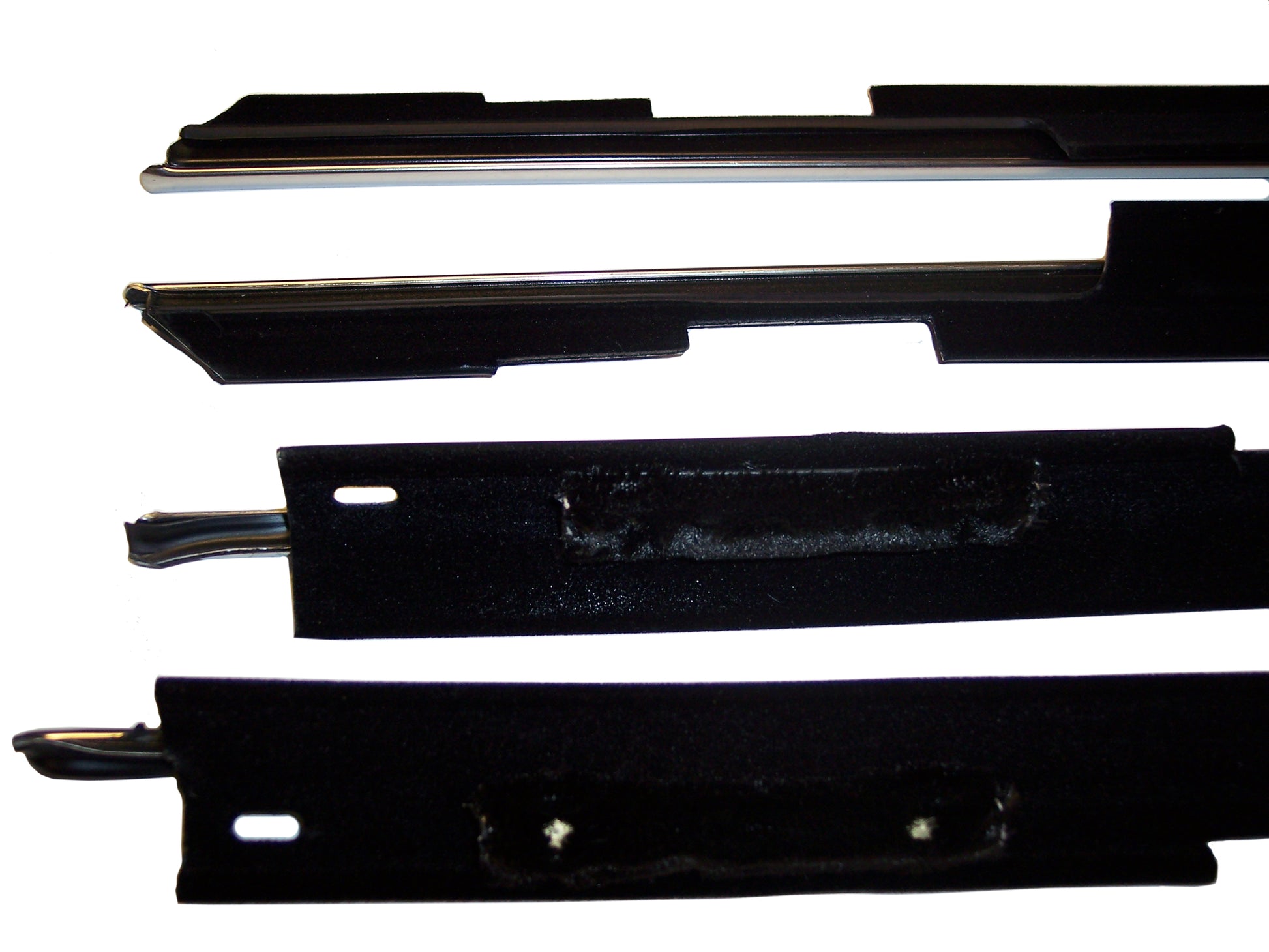 The window sweeps (also called dew wipes or felts) go horizontally across the top of the doors and quarter windows and touch the inside and outside of the glass, they keep the windows from rattling and 'wipe' the glass as it is rolled up and down.