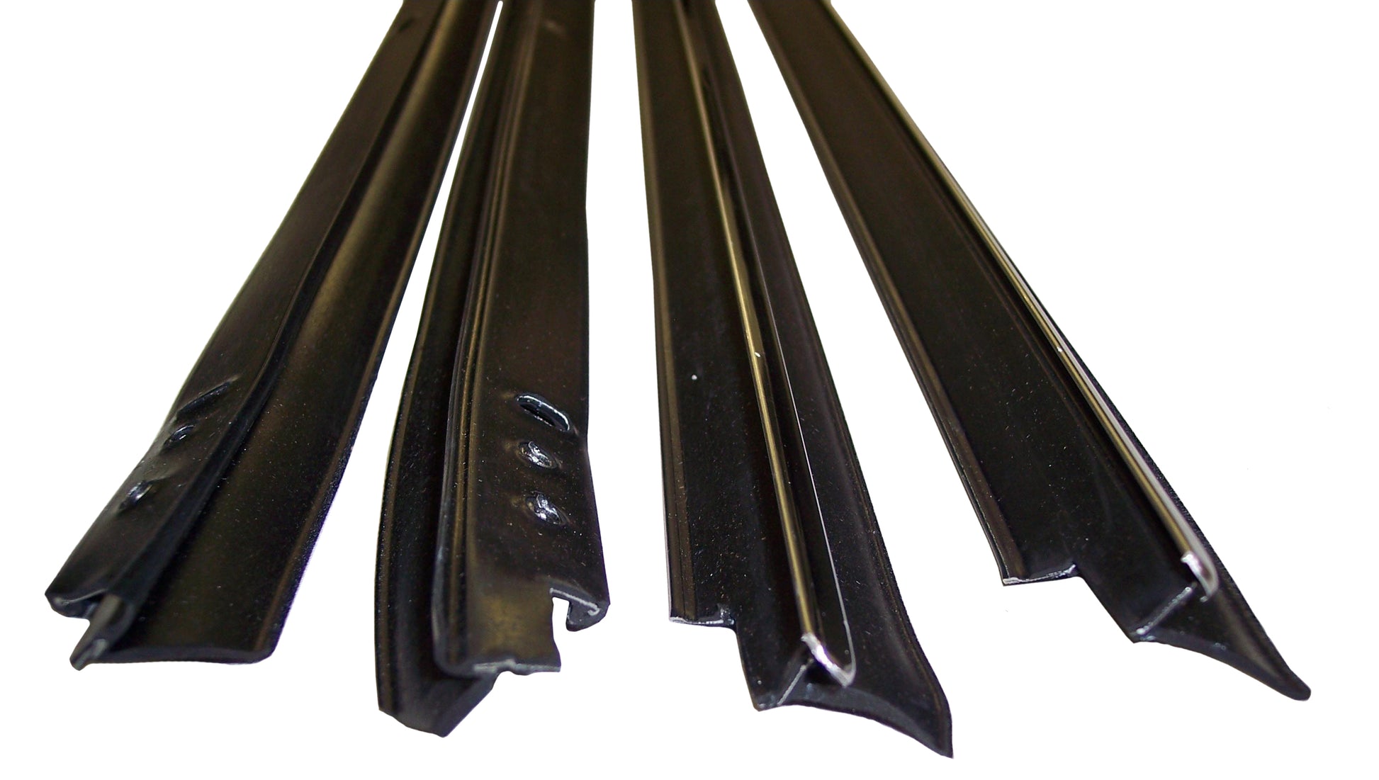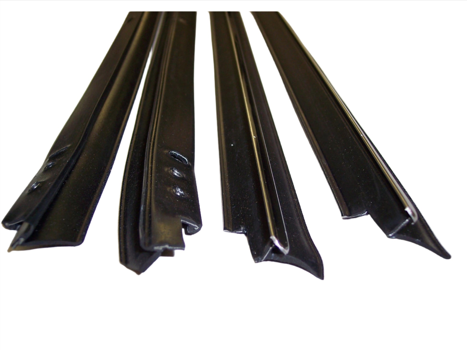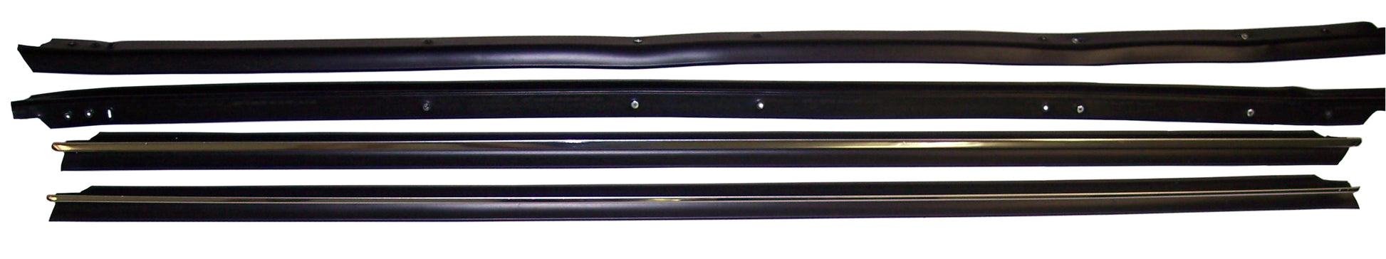 The window sweeps (also called dew wipes or felts) go horizontally across the top of the doors and quarter windows and touch the inside and outside of the glass, they keep the windows from rattling and 'wipe' the glass as it is rolled up and down. This set is contains 8 piece set to cover the front doors on the inside and outside as well as the quarter window sweeps for the inside and outside. This car could have come with 2 different types of window sweeps on the outside and it is important that you know which style you have. Some of the cars came with a molding on the outside of the doors and it was actually attached to the car door, if you remove the window sweep the molding strip comes with it. This set is for the cars with the molding strip attached to the car door and not the window sweeps, the outer window sweep will not have chrome on it. This set is made just for your 1981-1988 Chevrolet Monte Carlo 2-door hardtop.