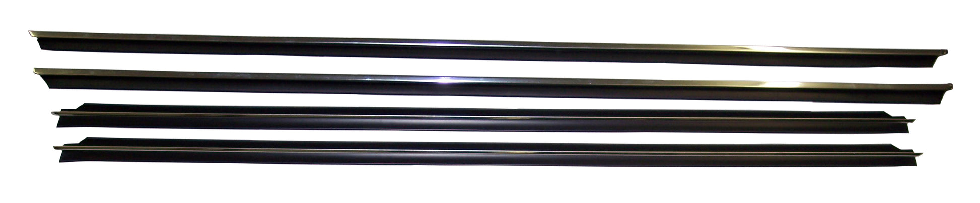 The window sweeps (also called dew wipes or felts) go horizontally across the top of the doors and quarter windows and touch the inside and outside of the glass, they keep the windows from rattling and 'wipe' the glass as it is rolled up and down. This set is contains 8 piece set to cover the front doors on the inside and outside as well as the quarter window sweeps for the inside and outside. This car could have come with 2 different types of window sweeps on the outside and it is important that you know which style you have. Some of the cars came with a molding on the outside of the doors and it was actually attached to the car door, if you remove the window sweep the molding strip comes with it. This set is for the cars with the molding strip attached to the window sweep and not the car door. This set is made just for your 1981-1988 Chevrolet Monte Carlo 2-door hardtop.