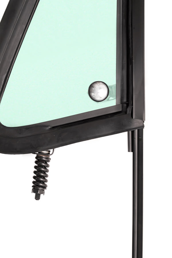 This fully assembled vent unit features factory green tint glass and is pre-assembled with the weatherstrip and handle, , making it ready for easy installation. The package includes a-pillar screws with cone washers, lower division bar bolts, and the top division bar screw. Specifically designed to fit the right passenger side door.