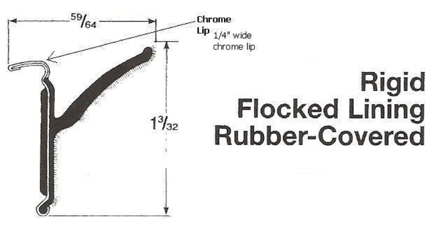 The window sweeps (also called dew wipes or felts) go horizontally across the top of the doors and quarter windows and touch the inside and outside of the glass, they keep the windows from rattling and 'wipe' the glass as it is rolled up and down. If you are having a hard time finding a premade kit for your car we have the perfect solution for you, we now have the raw material you can use to make your own kit. All of our bulk window sweep material is available in 2-foot, 3-foot and 4-foot lengths, and contains 2 pieces, enough for either the insides or outsides of both doors. Most cars will require 3-foot or 4-foot pieces for the doors and usually 2-foot pieces for the rear quarter windows. This listing is for a pair of 3 foot long pieces, it is usually used on the inside of GM cars from the 70's to the late 90's and has a chrome bead that is approx. 1/4" wide at the top.